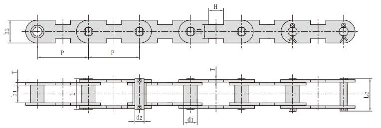 P100F54,帶附板輸送鏈,工程鏈條廠家,鏈條規(guī)格參數(shù)